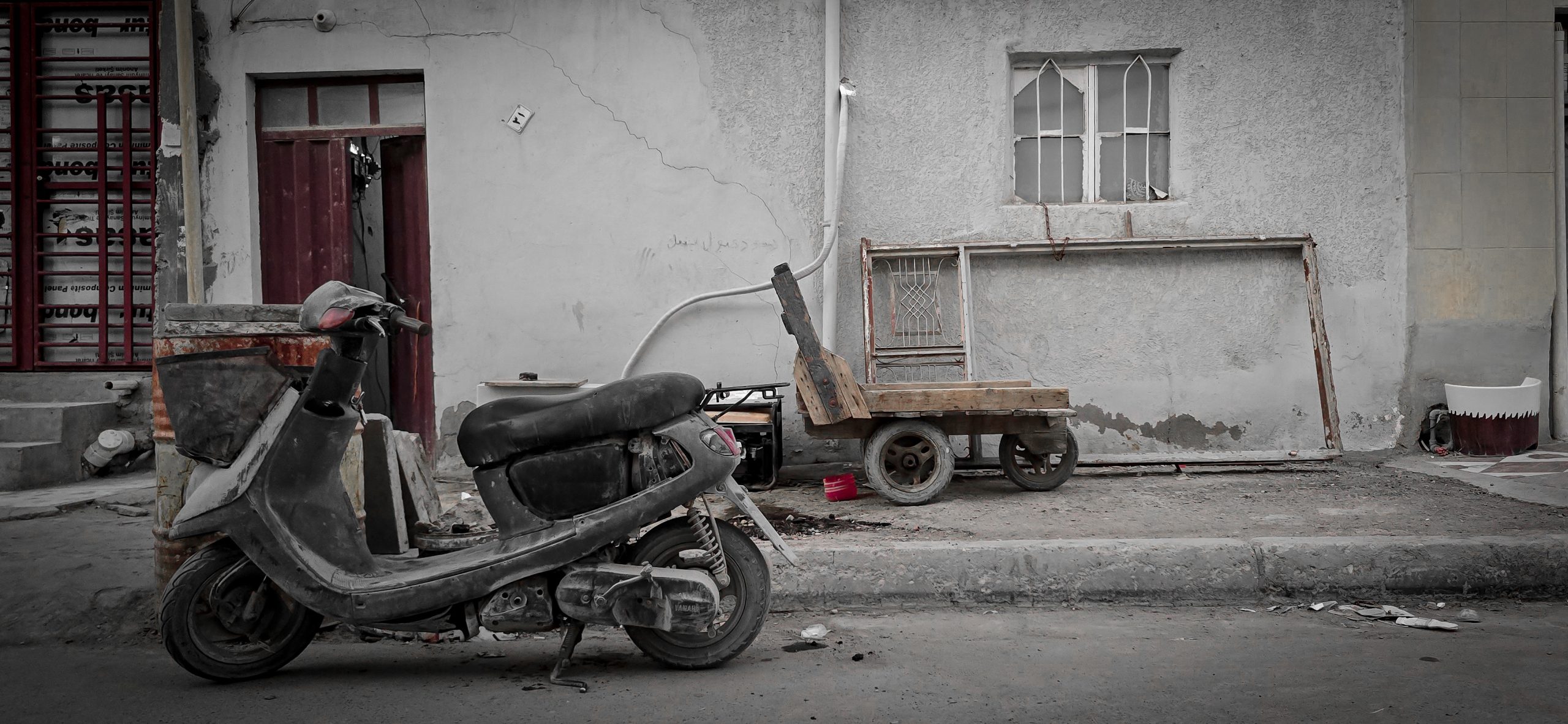 این تصویر آستانهایست میان حرکت و ایست؛ یک موتورسیکلت خاکگرفته مثل خاطرهای که دیگر روشناییاش کمرنگ شده و یک بارِ...